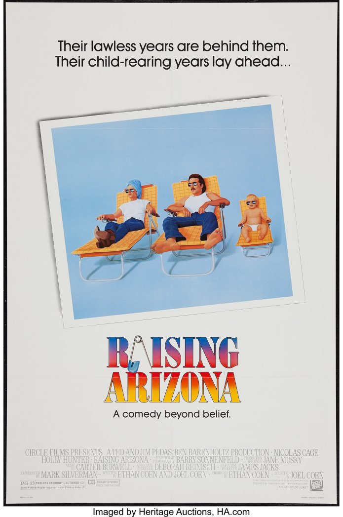 Small time thief H.I. McDunnough (Nic Cage) was being arrested and taken to jail on a regular basis. Every time he was arrested, he had his mug shot taken by a female cop named Ed (Holly Hunter). Each time, H.I. started to fall for her more and more. Finally, deciding to turn his life around, H.I. proposed to Ed.