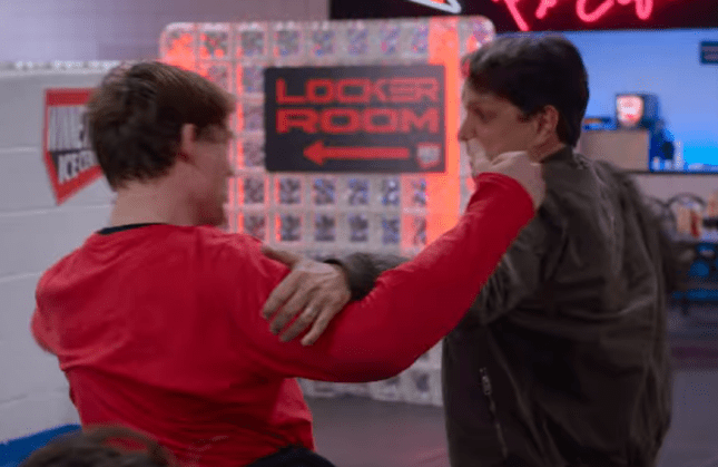 Meanwhile, Daniel and Johnny are teaching each other their respective brand of karate in hopes of creating a better understanding of the other’s philosophy. Daniel makes Johnny do the iconic “wax-on, wax-of” and “paint the fence” routines while Johnny takes Daniel to a warehouse and eventually a hockey game.