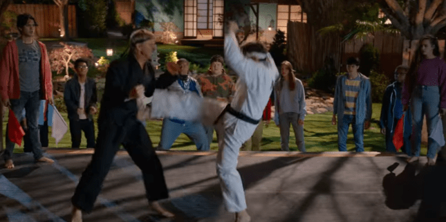 Meanwhile, Daniel was recovering from his hangover, we got a Johnny Lawrence training montage. Johnny slipped right back into his bully persona as he was shoving people out of his way and causing destruction such as karate kicking a mailbox. The montage was in tune with Survivor’s Burning Heart from the Rocky movies.