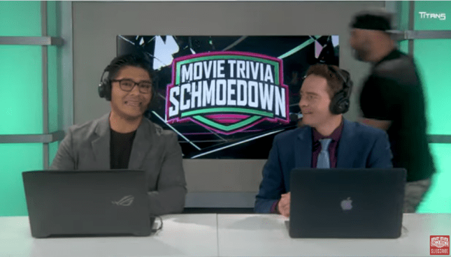 It is Friday night and it is time again for the Movie Trivia Schmoedown’s weekly show, Friday Night Titans. This week we get a number one contenders match for the Innergeekdom championship on task with Saul facing off with Kevin “The Smasher” Smets. The winner of the match would earn a title match against the IG Champion Mike Kalinowski in a couple of weeks.