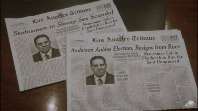 I also remember how much I disliked Jack Thompson, even more than season one. He has looked like a crooked agent, bowing to the wants of Kurtwood Smith and the group behind the scenes. I do not remember if Thompson takes a turn for the better as the series goes on, but the newspaper headlines that Peggy told him she saw the day before, about a rigged election, made him raise an eyebrow.