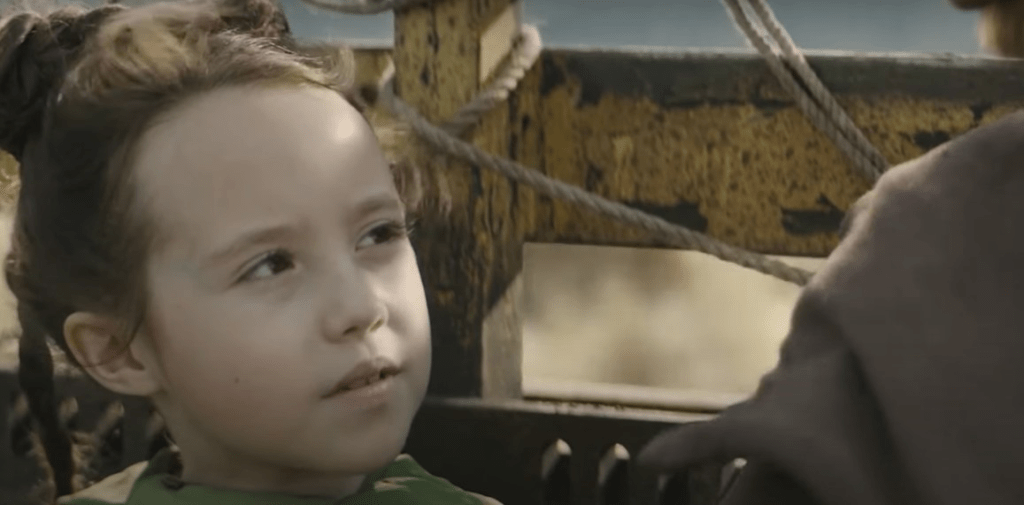 Then, Leia is a great improv partner. The young actress playing Leia is named Vivien Lyra Blair and she has been doing an incredible job, especially in this episode. She really reminds you of Princess Leia (Carrie Fisher).