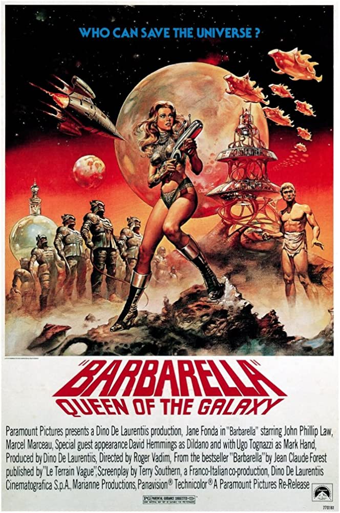 Barbarella started off with Jane Fonda floating around as if in zero gravity, slowly doing a striptease as words floated around her body to cover her nudity (at least partially). From that point on, I knew what kind of film this was going to be.