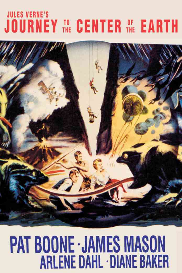 Accordig to IMDB, “Edinburgh university professor Sir Oliver Lindenbrook (James Mason) believes he has found an very old message from a long lost scientist who may have found the way to journey to the center of the Earth. With his assistant, student Alec McKuen (Pat Boone), he sets off for Iceland where an entrance in a volcanic range is to be found. They are soon joined by Carla Goetabaug (Arlene Dahl), whose scientist-husband was recently murdered, and Icelander Hans Belker (Peter Ronson) as they descend into the bowels of the Earth.“