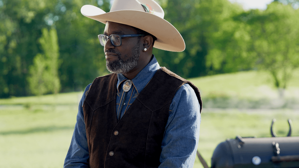 Picking up a barking, little dog that only stopped barking when the radio was on a far right radio podcast, Charlie got a job with a BBQ joint in Texas. Taffy Boyle (Lil Rel Howery) had his own podcast, which led to his plan to off his brother, George (Larry Brown).