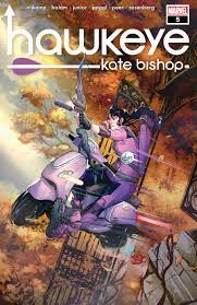 Hawkeye: Kate Bishop #5. This is the conclusion of the Kate Bishop storyline included the actual guest star appearance by our texters from the entire series, America Chavez and Cassie Lang. I have really enjoyed the use of this character and the way Kate is able to work her way through the case. And also…Lucky the Pizza Dog! Written by Marieke Nijkamp and drawn by Oren Junior and Roberto Paggi.