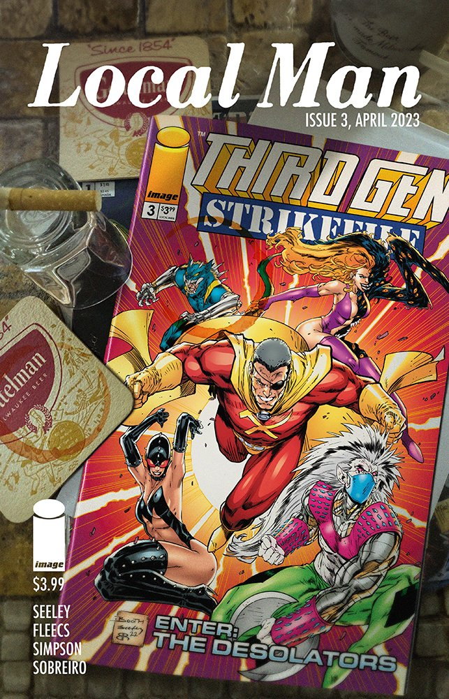 Local Man #3. Written by and with art by Tony Fleecs and Tim Seeley. One of the recent books that was in my box today. I have enjoyed the first couple of issues of Local Man. This book has been setting a great new world and we continue with the life of Jack, our one time disgraced super hero Crossjack.