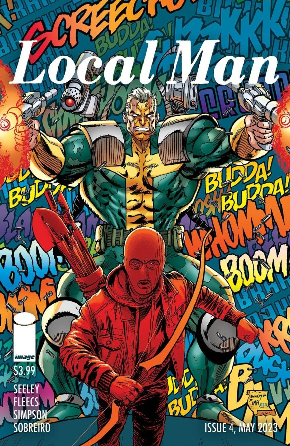 Local Man #4. Written by Tim Seeley and Tony Fleecs and Tony Fleecs also did the art. The cover was done by Tony & Tim and Brian Reber. Jack Xaver, being chased by the police for being Local Man (a joke about Jack wearing the same coat as the pic of Local Man in the papers was great), found the hideout of Camo Crusader, a former teammate whose plans were less than super heroic. The Local Man series continues to be very entertaining.