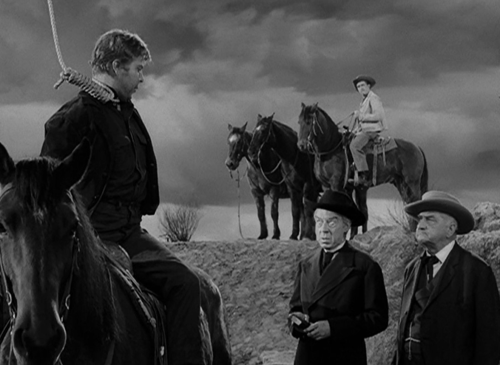 “This is November 1880, the aftermath of a necktie party. The victim’s name—Paul Johnson, a minor-league criminal and the taker of another human life. No comment on his death save this: justice can span years. Retribution is not subject to a calendar. Tonight’s case in point in The Twilight Zone.“