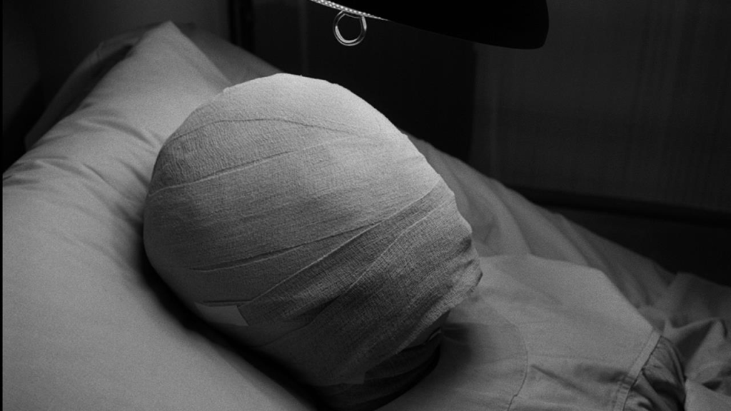 “Suspended in time and space for a moment, your introduction to Miss Janet Tyler, who lives in a very private world of darkness. A universe whose dimensions are the size, thickness, length of the swath of bandages that cover her face. In a moment we will go back into this room, and also in a moment we will look under those bandages. Keeping in mind of course that we are not to be surprised by what we see, because this isn’t just a hospital, and this patient 307 is not just a woman. This happens to be the Twilight Zone, and Miss Janet Tyler, with you, is about to enter it.“
