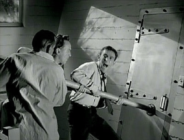 Eventually, they constructed a battering ram and broke open the door to the bomb shelter. Just as they had burst through, the announcement that the objects were identified as satellites and were not bombs came through, leaving the mob shocked and dejected over their behaviors.