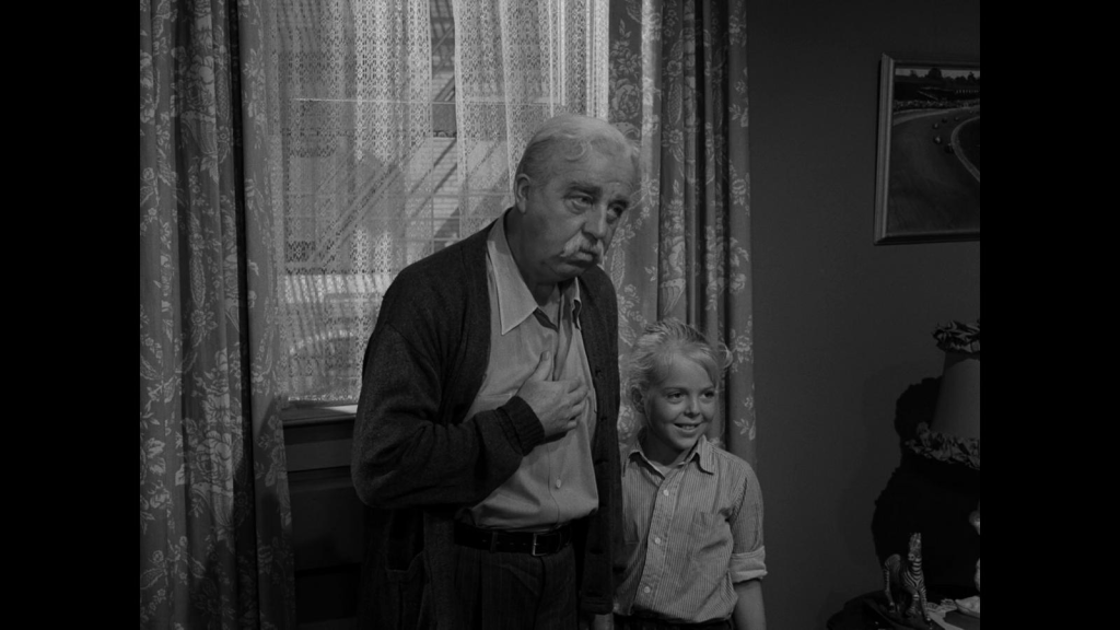 “It’s been said that science fiction and fantasy are two different things: science fiction, the improbable made possible; fantasy, the impossible made probable. What would you have if you put these two different things together? Well, you’d have an old man named Ben who knows a lot of tricks most people don’t know and a little girl named Jenny who loves him — and a journey into the heart of the Twilight Zone.”