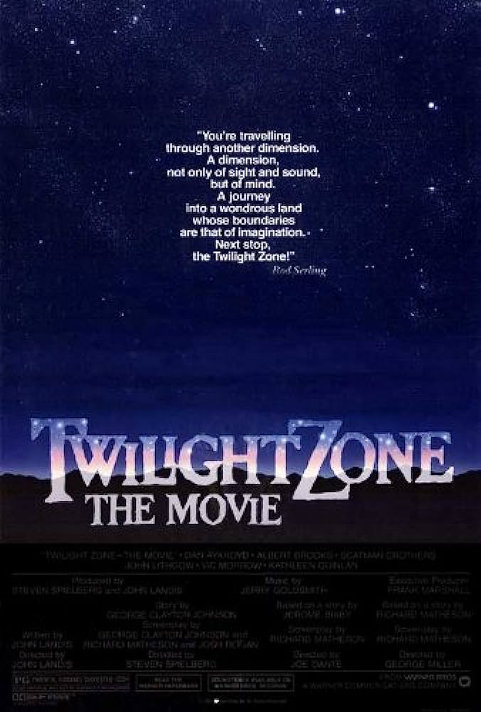 Twilight Zone: The Movie is an anthology film featuring several stories based on episodes from the original series which ran from 1959-1964 on CBS. The four separate stories were directed by John Landis, Steven Spielberg, Joe Dante and George Miller. Quite a murderer’s row of directors, for sure.