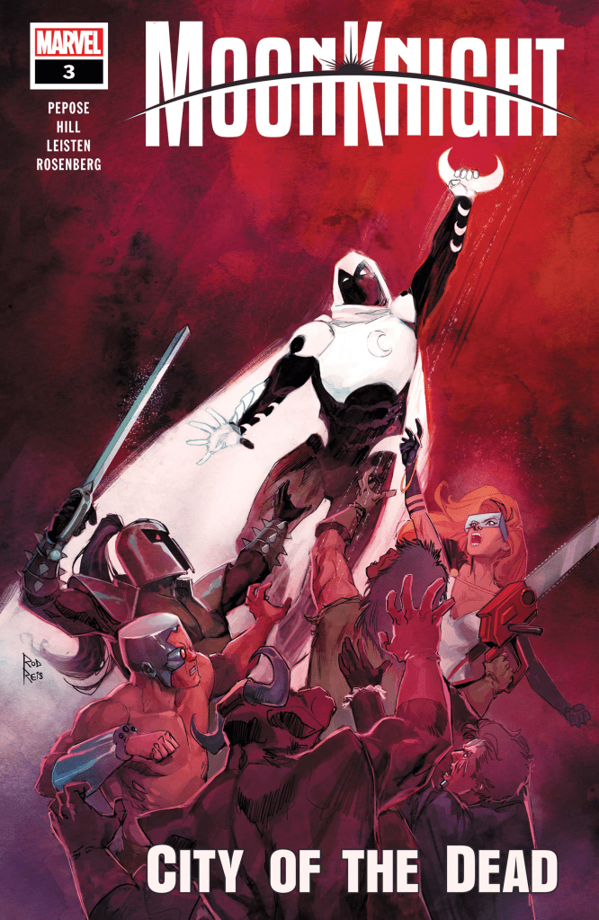 Moon Knight: City of the Dead #3. “Dead Reckoning.” Written by David Pepose and penciled by Sean Damien Hill. Rod Reis did the cover art. Moon Knight takes on his brother in an attempt to get Khalil away. However, little did Moon Knight know that Khalil has a bigger roles to play.