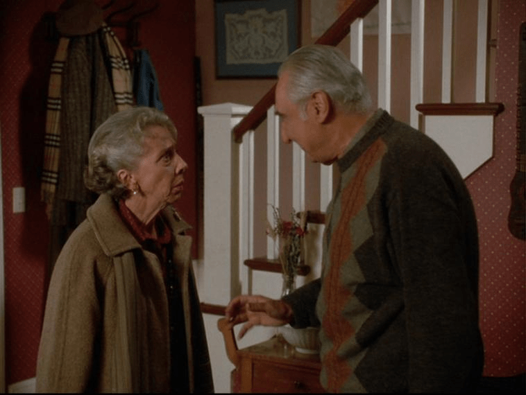 Other conflicts that were being contained within this Thanksgiving episode included Douglas Wambaugh, who had caught his wife Miriam in bed with another man, and Maxine and Kenny alone at the police station.
