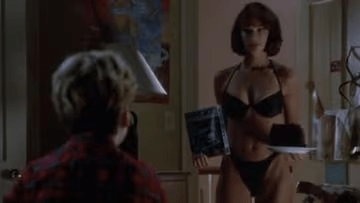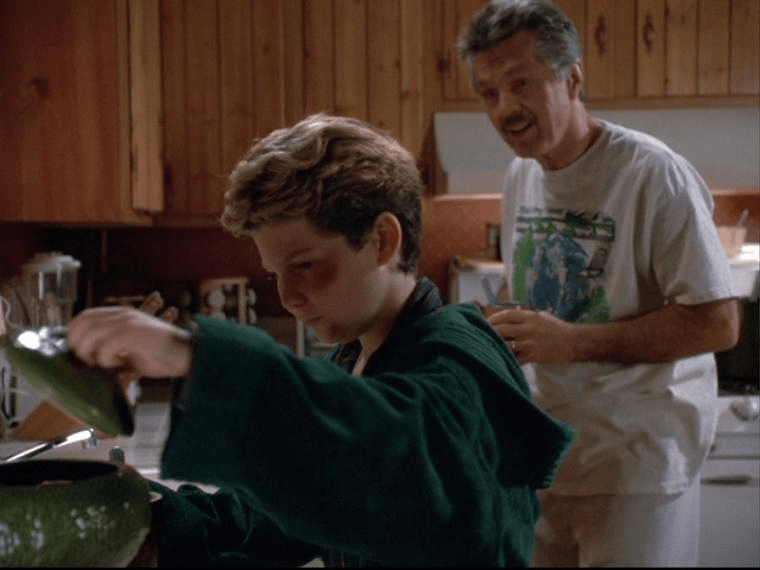 Then, as I was watching, the B-story of the episode was fairly shocking in its own right. It was Matthew who was having dreams about sex and having his ‘penis explode.’ That topic has been done before, but what was wild was how the show had Matthew’s dream being Maxine coming to him in a bra and panties (holding chocolate cake and a baseball card). It made me wonder if they shot this regularly or if there was some kind of movie magic involved because it felt a little creepy having Lauren Holly, the actress, approach teenager Justin Shenkarow, barely dressed and, in another moment, undid her top.