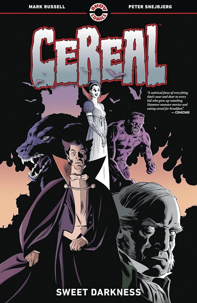 Cereal. “Sweet Darkness.” Written by Mark Russell and drawn by Peter Snejbjerg. Another book that I technically did not ask for, but Pat (another Comic World employee) had gotten one for himself and he thought that I would like it and he put it in my box. And he was right. Cereal is a weird satire of the monster movies of the past while using the characters from American breakfast cereals such as Count Chocula or Frankenberry. I was constantly looking for more allusions to the cereal mascots (there are a bunch of them) while enjoying seeing this (sorta) serious story with them involved. The Comic World guys are good to me.