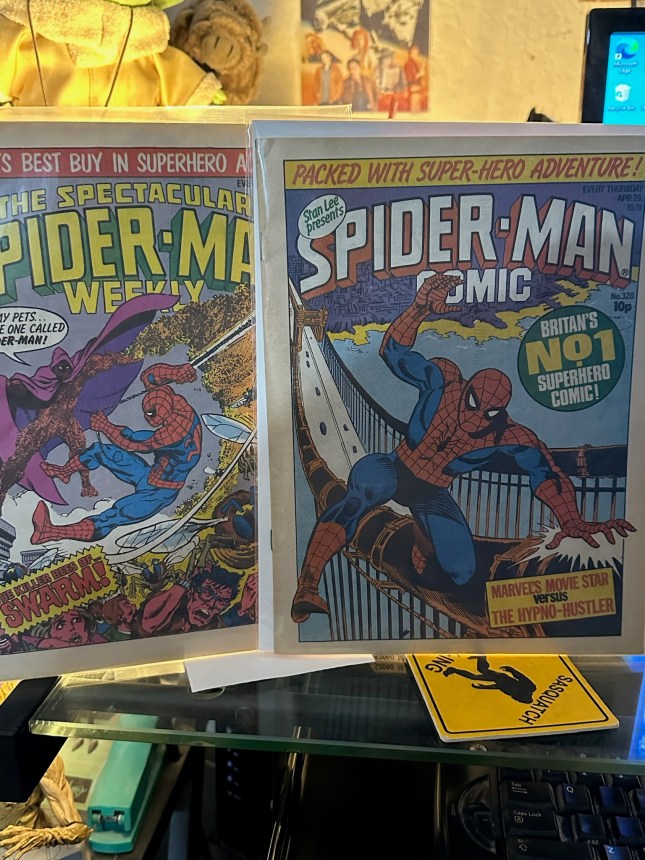 My friend Todd picked up a couple of comics from England featuring Spider-Man and thought of me. He knows I am a huge Spider-Man fan and he asked if I was interested in these books. I was. They included Spider-Man Comic #320 and The Spectacular Spider-Man weekly #361. These are cool, oversized books to add to the collection.
