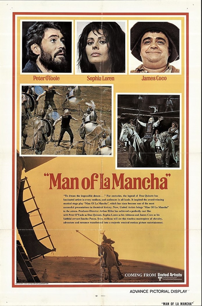 I decided to watch Man of La Mancha today on Amazon Prime for the Genre-ary DailyView. Peter O’Toole and Sophia Loren starred in this tale of Don Quixote, an adaptation of the Broadway play of the same title.