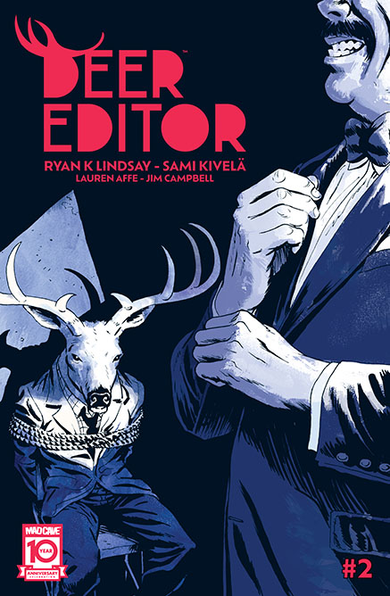 Look at this cover. You have a deer-man tied to a chair with someone dressed in a nice outfit. I love the color scheme with the black and red and slight blue tint. Nicely done from this Madcave book.