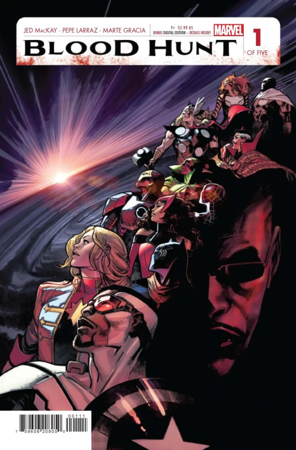 Blood Hunt #1. Written by Jed MacKay and drawn by Pepe Larraz. Cover art Pepe Larraz & Marte Gracia. I also picked up a variant cover issue with a cover by Stanley “Artgerm” Lau (Bronze Medalist). The new vampire story arc in Marvel kicked off with Blade turning heel and attacking the Marvel Universe. There are some shocking moments with major characters dying, but I have problems with that. They aren’t dead. They will return from death soon and it is sad that I feel no angst over the loss of any of these characters. Otherwise, Blood Hunt is off to a cool start.
