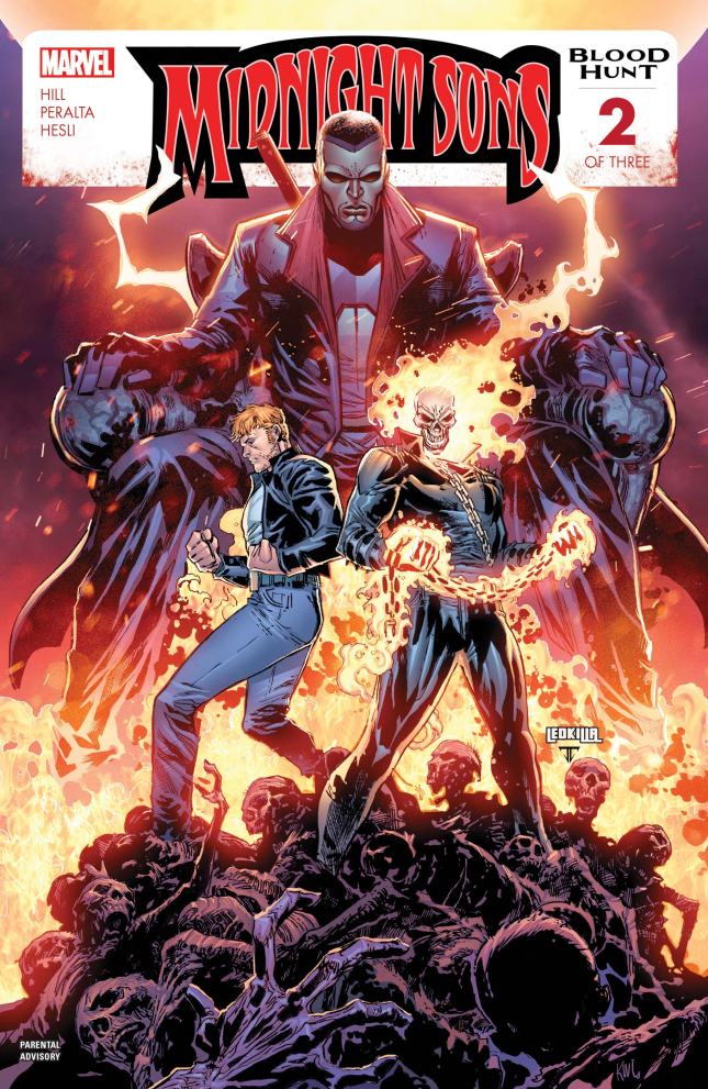 Midnight Sons: Blood Hunt #2. Written by Bryan Hill and art by German Peralta. Cover art was done by Ken Lashley & Juan Fernandez. Tulip, Johnny Blaze, Victoria Montesi and Ghost Rider are teaming up trying to find out why Blade has become the head of all vampires. Blade is here to let them know.