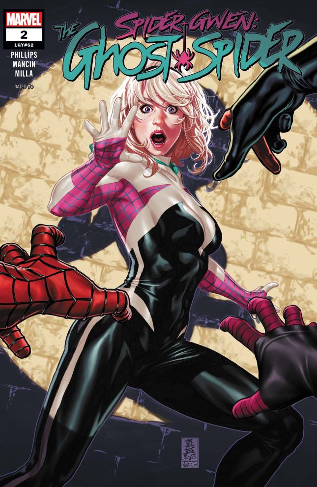 Spider-Gwen: Ghost-Spider#2. “Haunted Part Two” Written by Stephanie Phillips and drawn by Federica Mancin. Mark Brooks did the cover art. Peter, Miles and Silk are trying to find out what Gwen Stacy is doing in the 616 universe. She’s not telling. And the Chameleon is here to cause trouble.