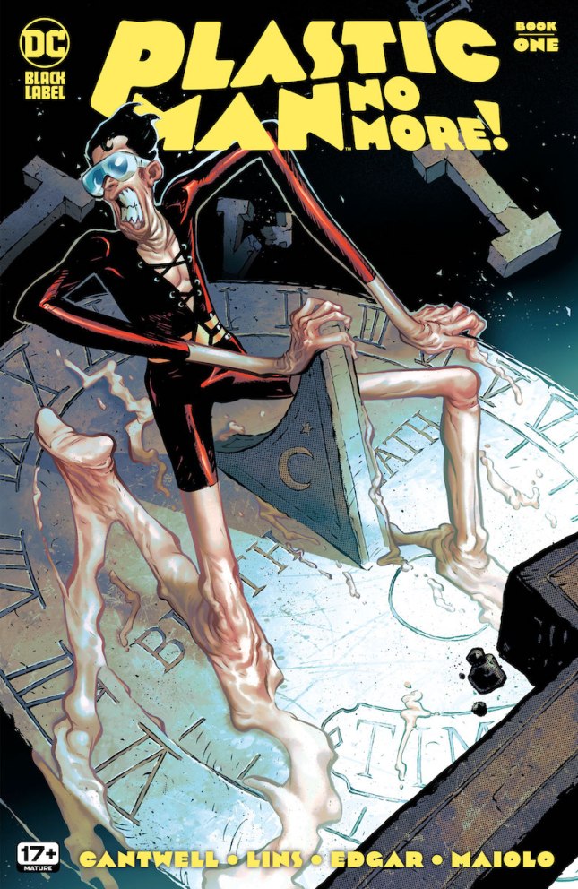 I have always enjoyed Plastic Man, but this cover is a little unexpectedly frightening and that’s cool.