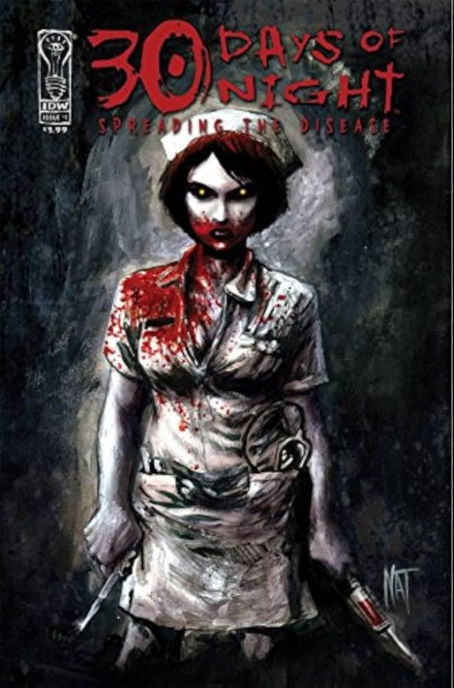 30 Days of Night: Spreading the Disease #1-5. Written by Dan Wickline and art by Tony Sandoval. All five of my issues were cover B variants done by Nat Jones. This series from IDW and it featured a lot of vampires and it provided a very dark and scary feel to it.