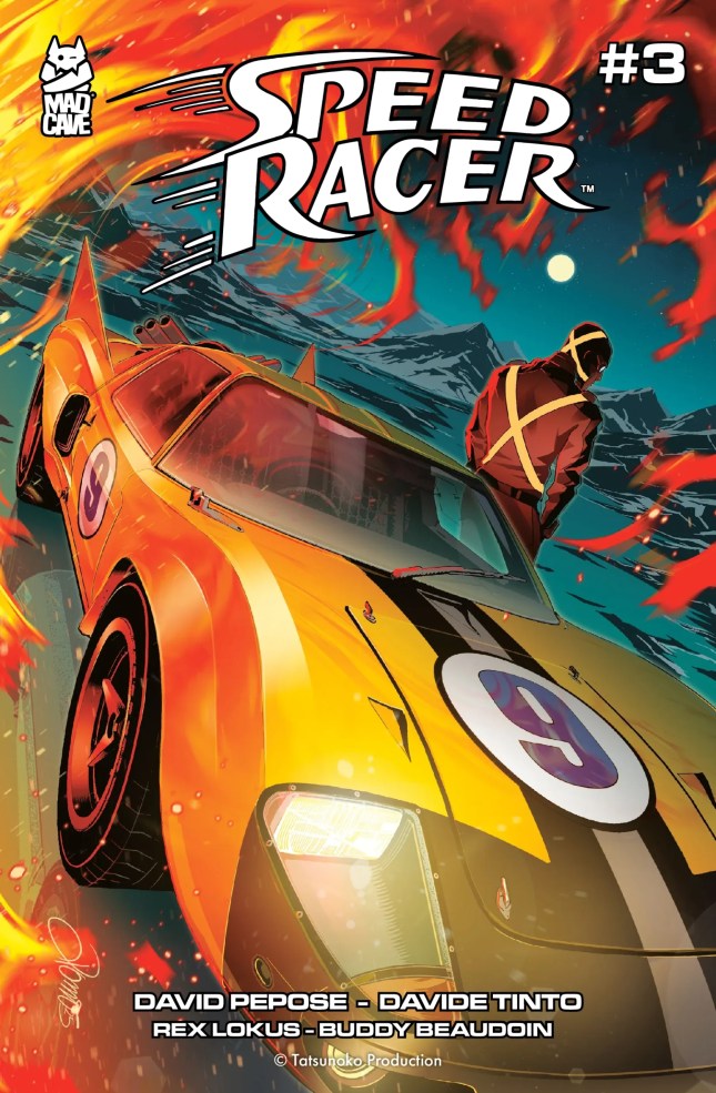 Speed Racer #3. Written by David Pepose and art by Davide Tinto. Cover art was done by Alessio Zonno. Speed Racer takes on Racer X. Nuff said.