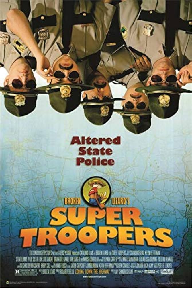 According to IMDB, “Five Vermont state troopers, avid pranksters with a knack for screwing up, try to save their jobs and out-do the local police department by solving a crime.”