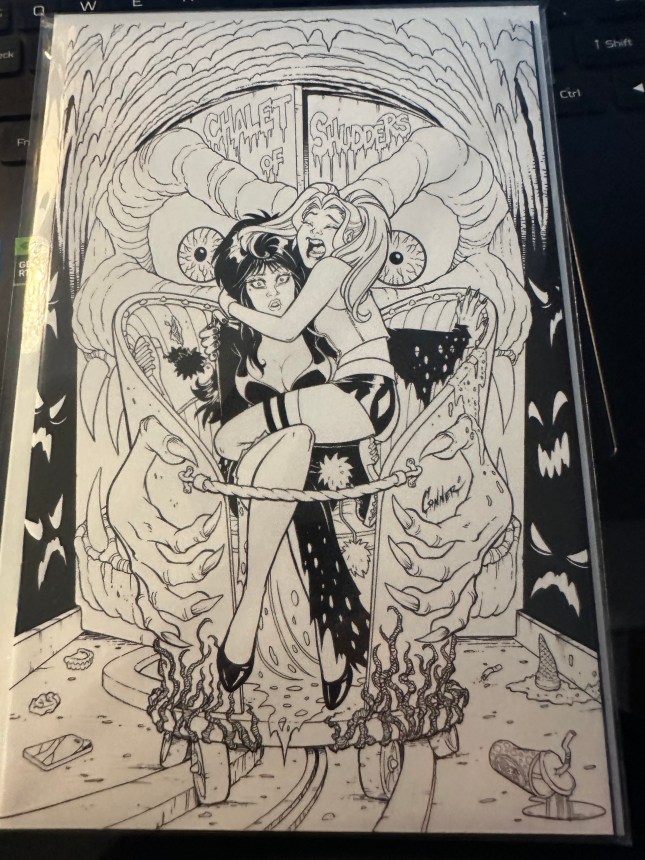This was from the Harley Quinn x Elvira Mystery Variant Blind Bag. It was a virgin cover from Amanda Conner, who did several different covers for the bags. I love the sketch version of the art, though she apparently had a few special, hand-drawn version in the bags. This is not that, but still a cool idea. Blind Bags are all the rage right now.