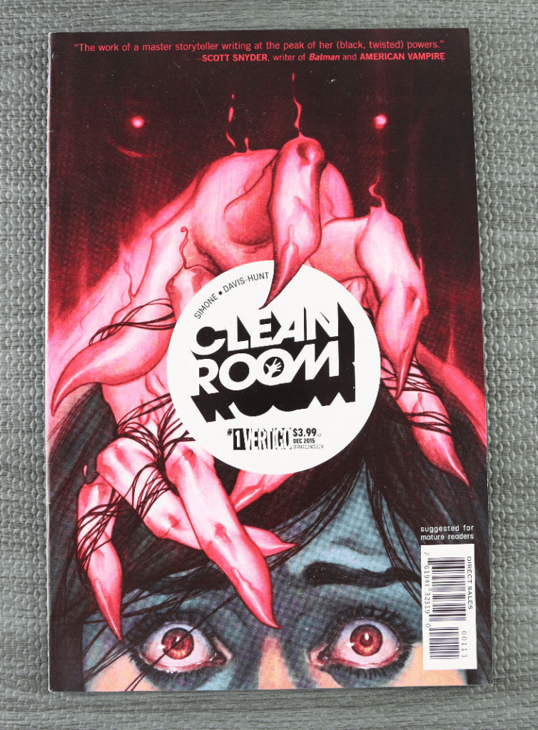I was inspired to do this by a series that I picked up on eBay this past week. I had been interested in the latest rebirth of DC Comics’ Vertigo line. These new books are intriguing and I will be picking them up. Meanwhile, I was on Blue Sky recently and Gail Simone (or someone who was responding to her) brought up a series called Clean Room. I had never heard of it before so I went to eBay and found the whole 18-issue series. It had debuted in December 2015 and I decided to order it.