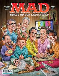 Mad Magazine #49. Mad Magazine came out this week, one issue away from 50. This issue featured Mad’s typical comedic bits surrounding and involving Late Night TV shows. They did satire about the Late Show, The Daily Show, The Tonight Show, Letterman, as well as some classic older late night programs. There is also a wonderfully funny and poignant letter to Stephen Colbert for his final episode of The late Show with Stephen Colbert, which will be ending in May.