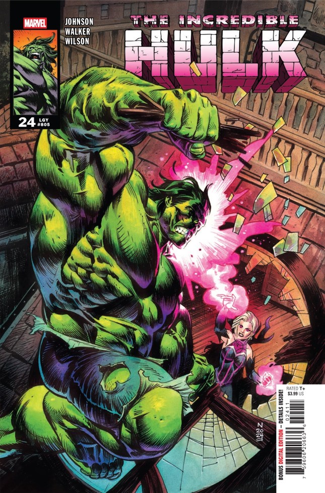 Incredible Hulk #23. “The Skin of Charlie Tidwell” Part Two. Written by Phillip Kennedy Johnson and art and cover art by Nic Klein. This is a creepy episode as the winged monster is wearing Charlie’s skin. Sentence you would never expect the Hulk to say: “Take off the skin now.”