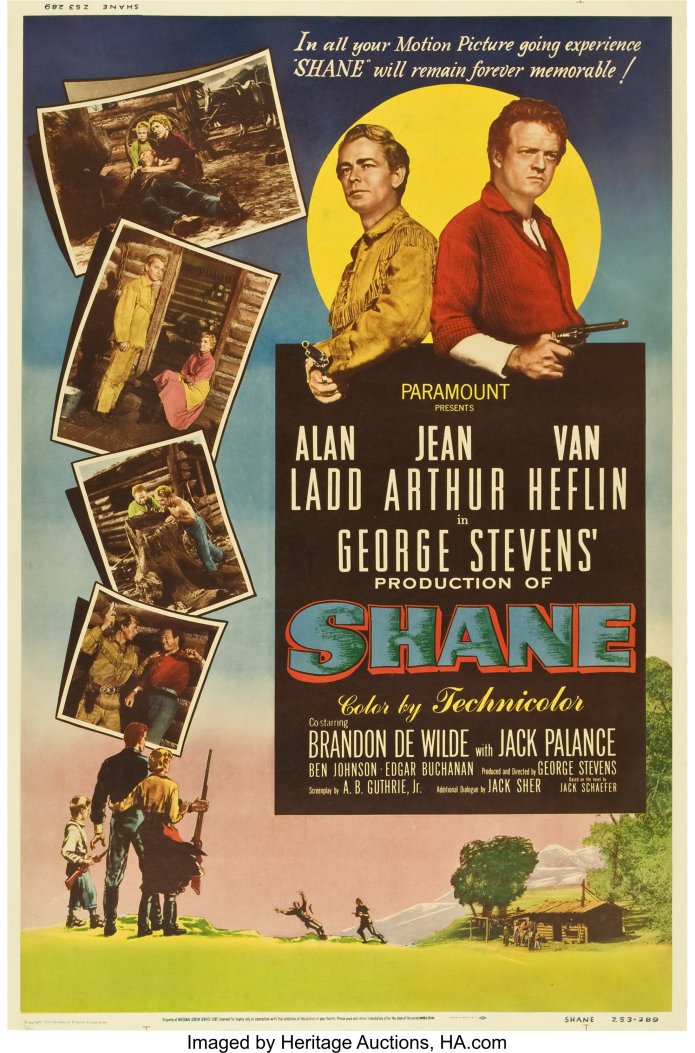 Directed by George Stevens, Shane featured Alan Ladd, Jack Palance, Jean Arthur and Van Heflin.