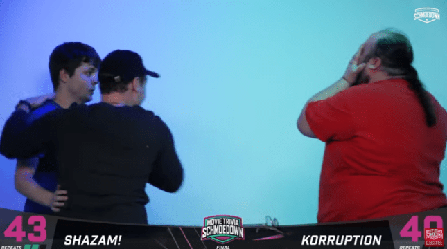 It is nice that these players are working now as Faces because they were able to really embrace that emotion without having to play it off. Korruption is certainly one of the best teams ever to compete in the Movie Trivia Schmoedown.